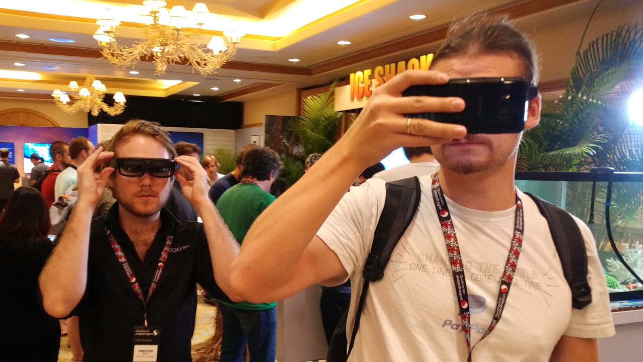 Эта технология стирает грань между реальным и виртуальным мирами, помогая установить взаимодействие между игроком и существующими физическими объектами. Для отслеживания рук в этих приложениях Qualcomm сотрудничает с компанией Leap Motion, и их программное обеспечение действительно отлично работает на решениях компании — мы опробовали специальные демо-версии и остались впечатлены качеством отслеживания. А вот качеству изображения есть куда расти.