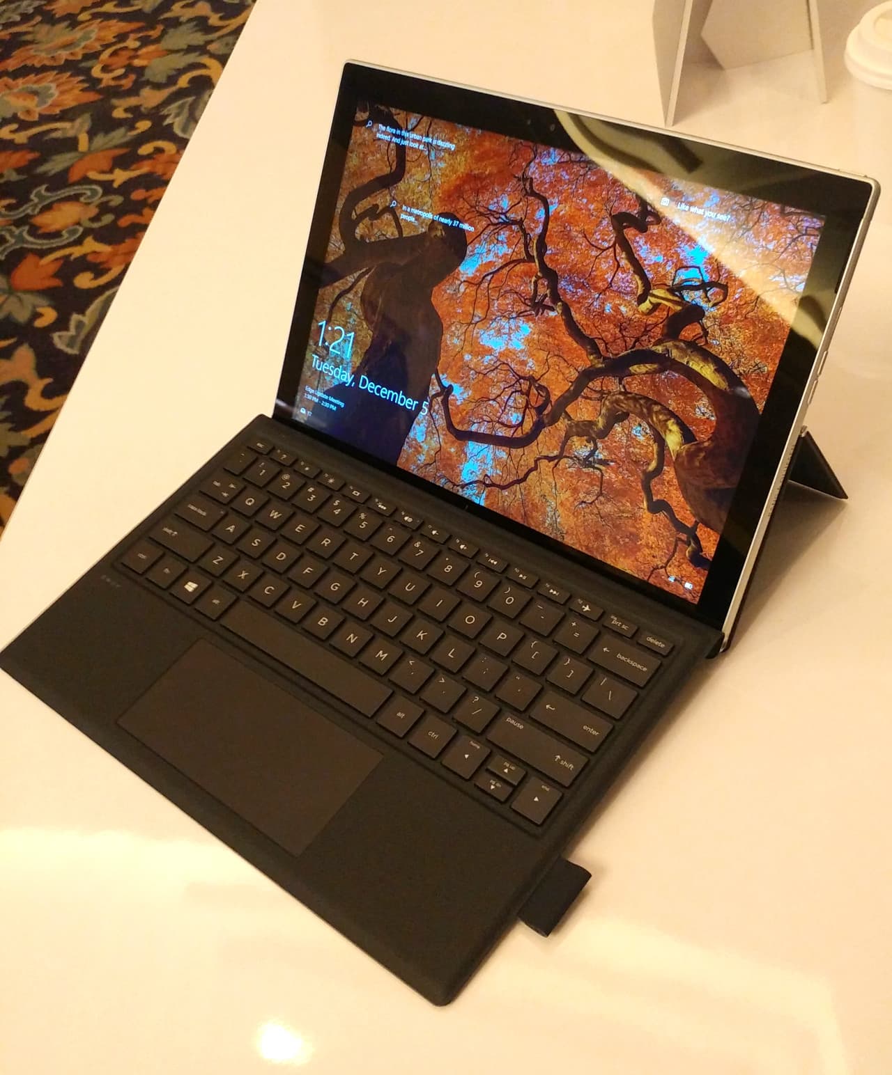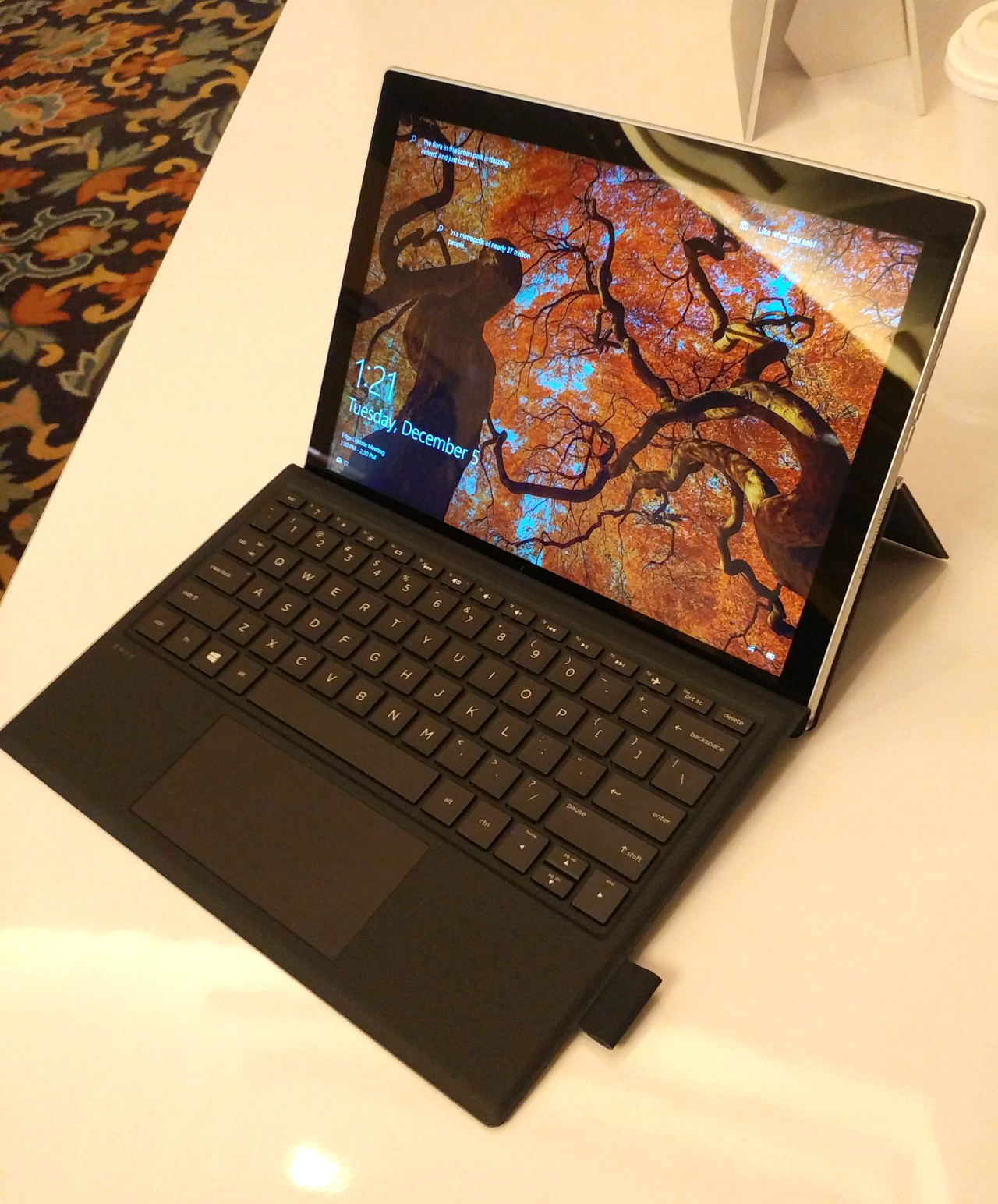 Второй представленной моделью был Envy X2 компании HP, который ожидается к появлению в продаже весной следующего года. Это уже, скорее, большой планшет (по сути — аналог Microsoft Surface Pro с пристегивающейся клавиатурой) с 12-дюймовым экраном разрешения 1920×1200, имеющий алюминиевый корпус толщиной 6,5 мм и обеспечивающий 20 часов проигрывания видео. Аппаратные конфигурации будут разные, но самая мощная — такая же, как у ноутбука Asus: до 8 ГБ ОЗУ и до 256 ГБ емкости твердотельного накопителя.