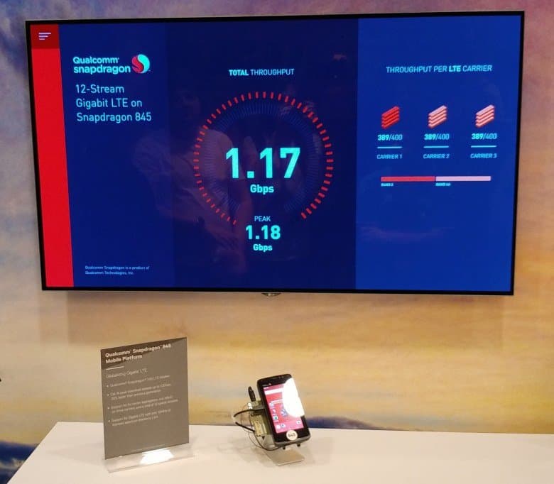 А еще более важным может быть быстрый доступ к большим файлам в различных облачных сервисах, ведь при высокой скорости передачи данных он будет мало отличаться от доступа к файлам, хранящимся в памяти смартфона. Qualcomm показывала работу гигабитного LTE на Snapdragon 845 в действии — в пике скорость действительно была близка к заявленной цифре: