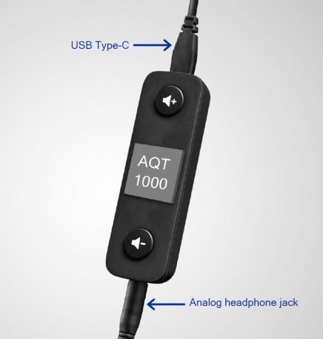 Компоненты внешнего ЦАП Qualcomm размещены в компактном корпусе, на котором есть разъем USB Type-C для подключения мобильного устройства и привычный аудиовыход 3,5 мм для подключения наушников. Также на корпусе Aqstic AQT1000 нашлось место для пары кнопок регулировки громкости звука, что довольно удобно.