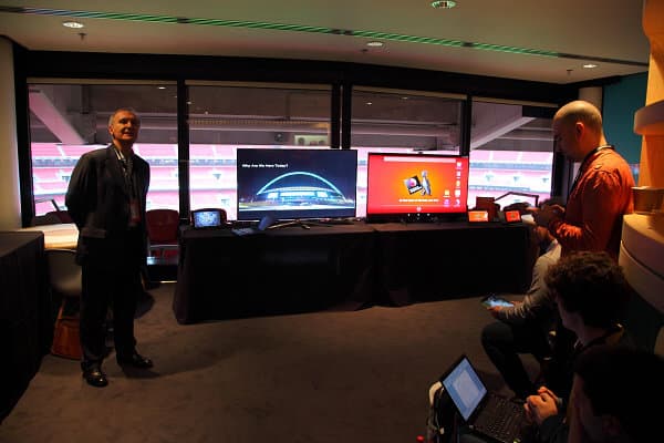 В последние годы именно EE стала в Британии той мобильной компанией, которая быстрее других внедряет технические новинки, и в этом году они вместе с Qualcomm решили продемонстрировать работу своей LTE-сети категории 9 на практике, запустив очень быструю коммерческую сеть. К слову, реклама EE на стадионе была повсеместно, у них есть специальная техническая программа для того, чтобы сделать Уэмбли самым коммуникационно-продвинутым стадионом планеты.