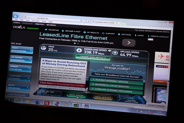 В качестве наглядного доказательства скорости передачи данных, пытливым европейским журналистам тут же были показаны замеры скорости на всем известном сайте speedtest.net, чтобы мы убедились, что никакого подвоха тут нет, все скорости реальны: