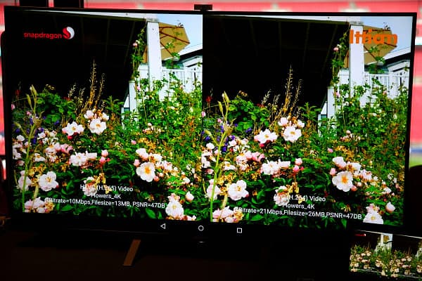 Вот эти демонстрации действительно интересны, ведь формат H.265 способен дать возможность сжимать видеоданные, получая вдвое меньший битрейт и объем при примерно том же качестве, по сравнению с наиболее широко распространенным сейчас форматом H.264. Или заметно улучшить качество видео при аналогичном битрейте — выбор за пользователем. Хорошо, что этот выбор появляется, и Qualcomm нужно похвалить — они сделали аппаратную поддержку набирающего популярность нового формата одними из первых.