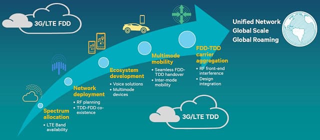 Также отметим многорежимный стандарт LTE FDD-TDD. Технология LTE поддерживает два режима: FDD и TDD. LTE TDD — двухсторонняя связь с временным разделением сигнала, при котором достигается оптимальное перераспределение ресурсов линий радиосвязи, а LTE FDD – мобильная связь с частотным разделением сигнала, когда сигнал разделяется на две разные частоты: для приема и передачи данных, что позволяет улучшить качество связи и снизить задержки при передаче. Изначально, выбор между FDD и TDD осуществлялся исходя из доступности частот, но в случае многорежимного стандарта LTE FDD-TDD операторы поддерживают оба режима, используя частотные ресурсы более эффективно.