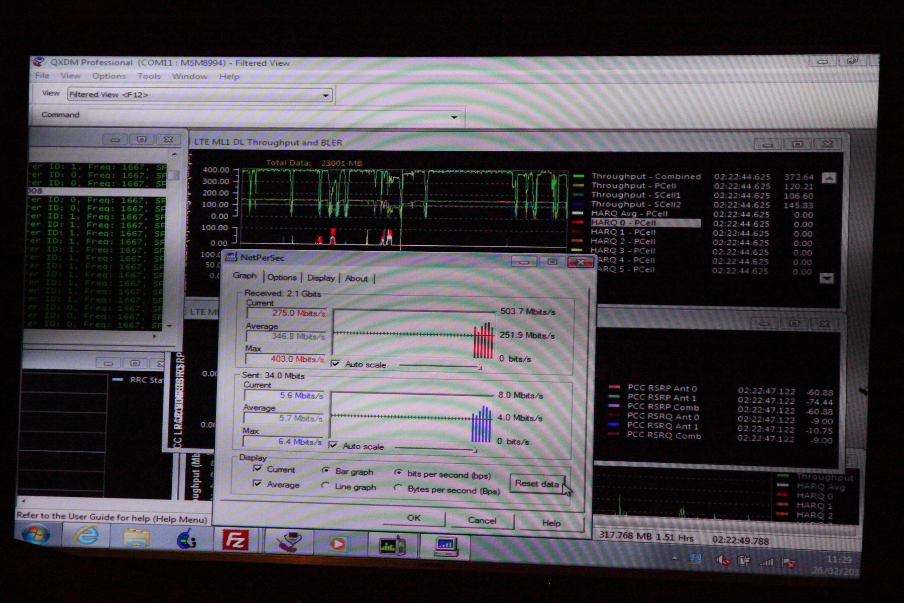 Пожалуй, самой важной из «живых» демонстраций Qualcomm для прессы, которые прошли на стадионе Уэмбли в Лондоне, стал показ в работе оборудования LTE категории 9, поддерживающего агрегацию трех несущих, что позволяет передавать данные со скоростью до 450 мегабит/с (в реальности — близко к 400). Для компании это важно, так как поддержка всех современных стандартов LTE является одной из самых сильных сторон решений Qualcomm.