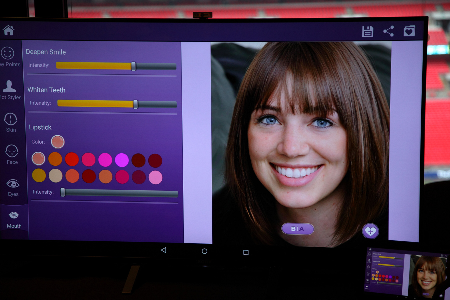 Также в Лондоне нам показывали забавное программное обеспечение для «улучшения» (возможно, тут лучше подойдет англоязычный термин — beautification) фотографий людей, при помощи которого можно изменить формы частей лица, усилить улыбку, «отбелить» зубы, изменить оттенок кожи и помады, цвет, форму и размер глаз и носа, и многое-многое другое — все по желанию пользователя. Для начала надо только задать точки, указывающие на формы частей лица.