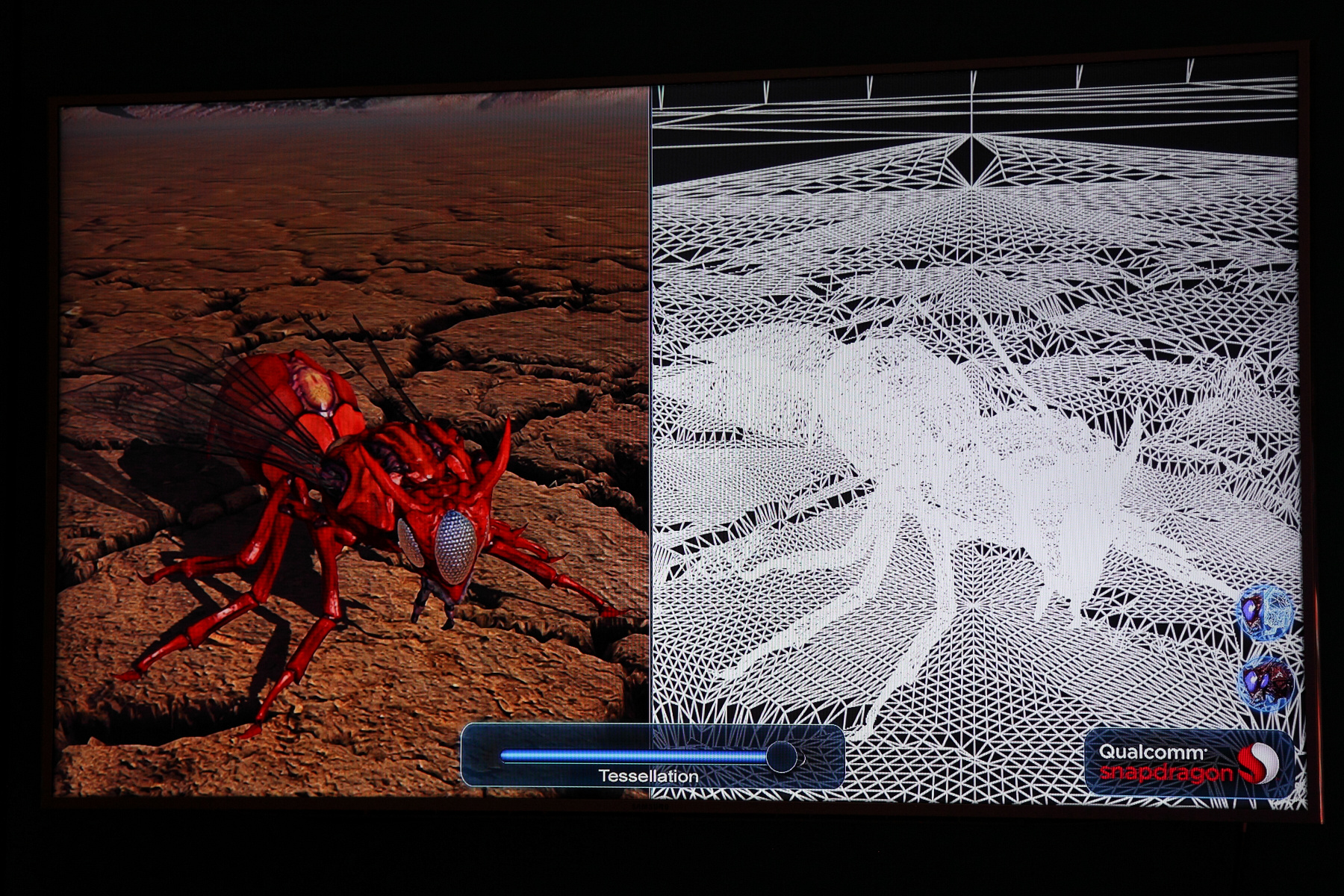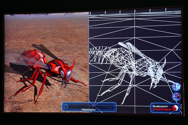 Еще одной демонстрацией возможности тесселяции 3D-сцены стала уже известная нам демка с насекомым, которую мы видели ранее на стенде компании Qualcomm на MWC: