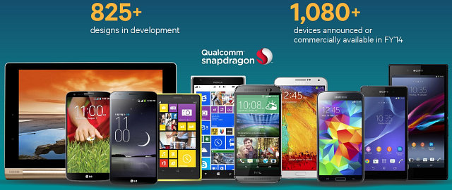 Особенно хорошо идут дела Qualcomm в среднем и топовом сегментах смартфонов, так как большинство моделей лидеров рынка основаны на их решениях семейства Snapdragon. Подумать только, за прошлый год было анонсировано или выпущено в продажу более 1080 устройств на чипах компании, а в разработке на данный момент находится еще более чем 825 дизайнов различных устройств на базе Snapdragon!