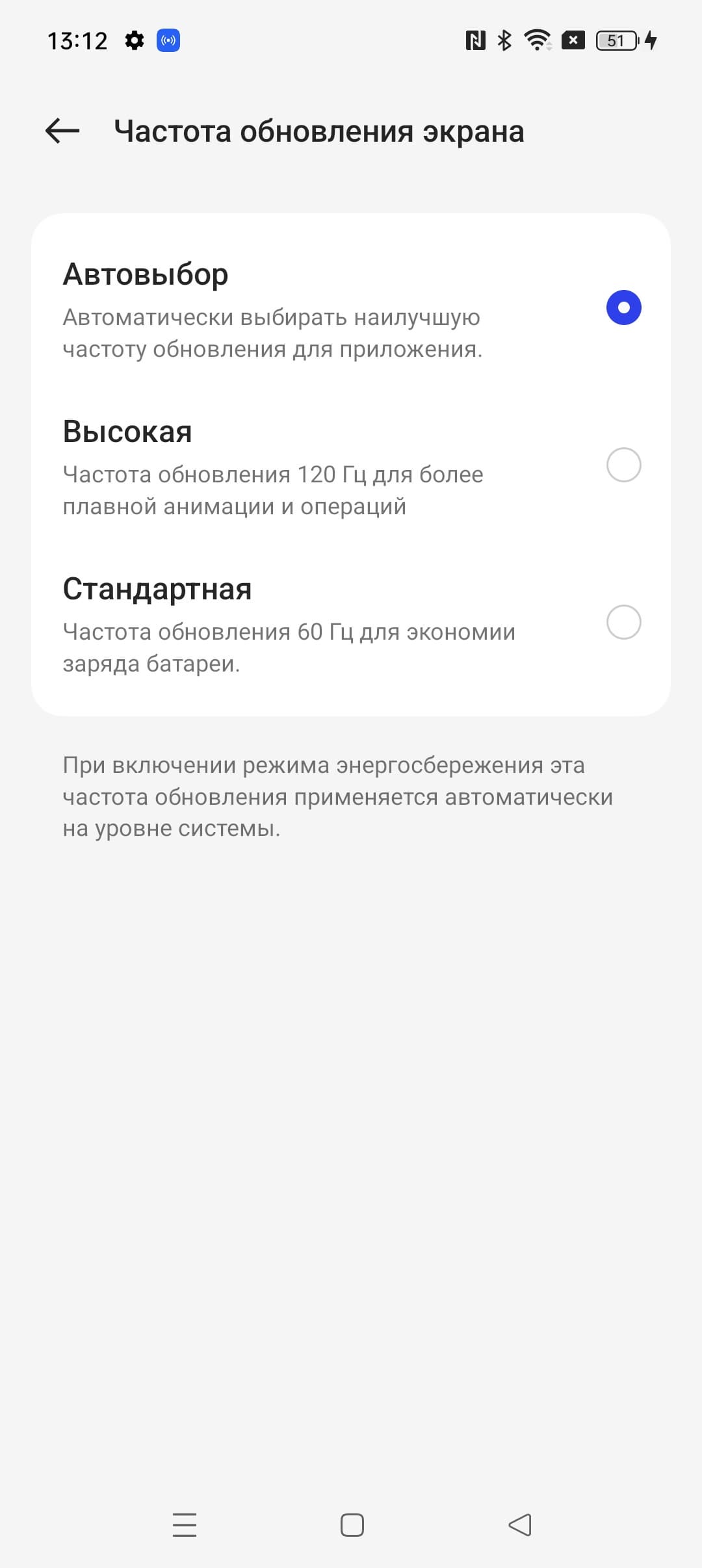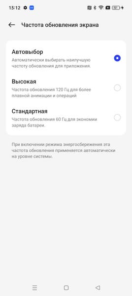 В настройках экрана можно включить режим с повышенной до 120 Гц частотой обновления: