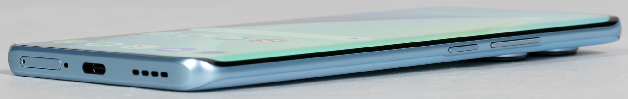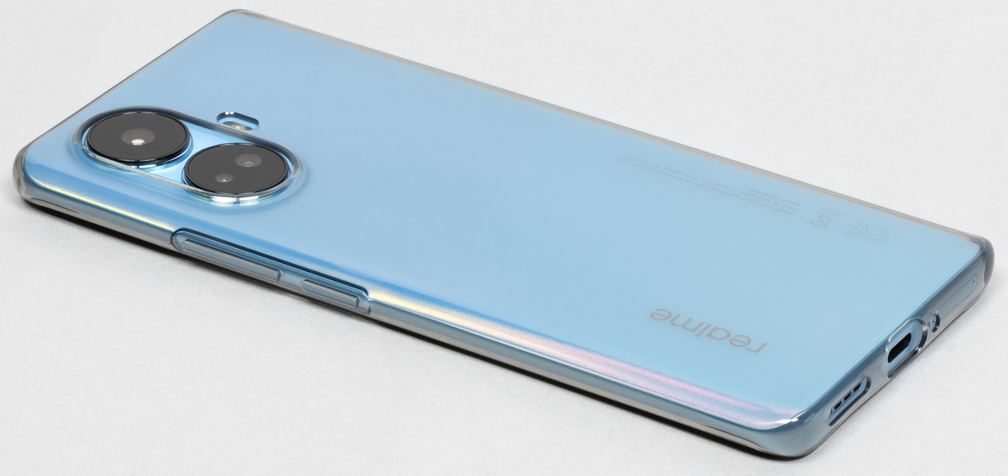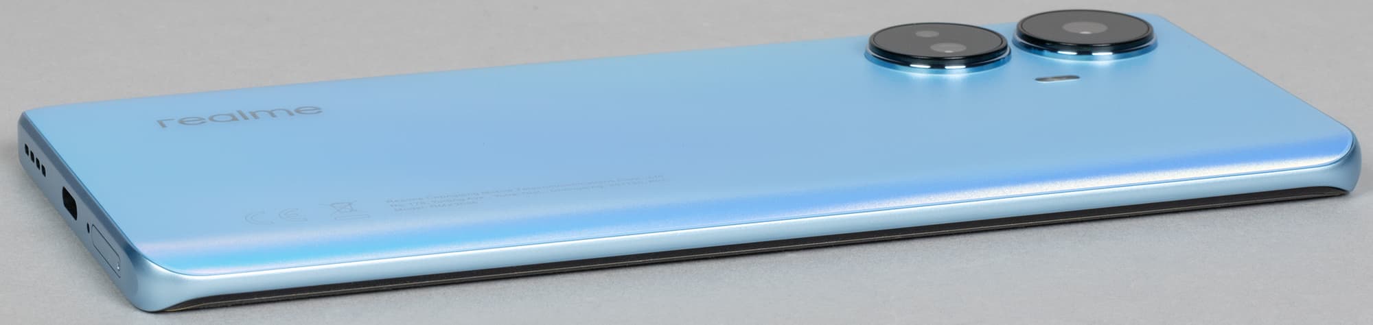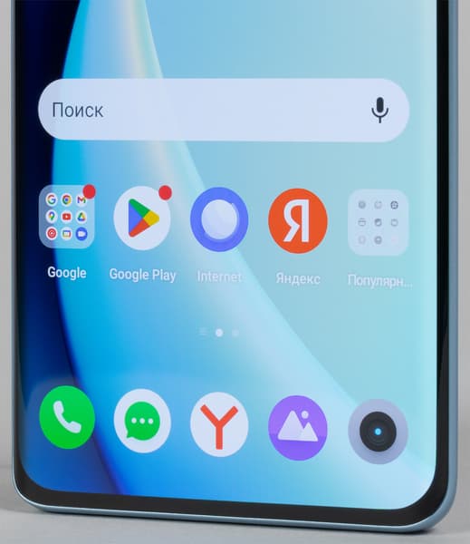 Экран у Realme 10 Pro+ 5G немного темнее (яркость по фотографии 92 против 98 у Nexus 7) и не имеет выраженного оттенка. Двоение отраженных объектов в экране Realme 10 Pro+ 5G очень слабое, это свидетельствует о том, что между слоями экрана нет воздушного промежутка. За счет меньшего числа границ (типа стекло/воздух) с сильно различающимися коэффициентами преломления такие экраны лучше смотрятся в условиях интенсивной внешней засветки, но вот их ремонт в случае потрескавшегося внешнего стекла обходится гораздо дороже, так как менять приходится экран целиком. На внешней поверхности экрана есть специальное олеофобное (жироотталкивающее) покрытие (по эффективности гораздо лучше, чем у Nexus 7), поэтому следы от пальцев удаляются легче, а появляются с меньшей скоростью, чем в случае обычного стекла.