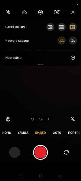 Интерфейс максимально насыщенный, здесь есть все режимы, которыми могут похвастать топовые смартфоны. Для фото Realme продолжает продвигать особый режим раскраски «Улица», а также ручной режим съемки, а для видео есть похожий режим с ручными настройками — «Фильмы». Приятно, что звук затвора можно отключить штатными средствами.
