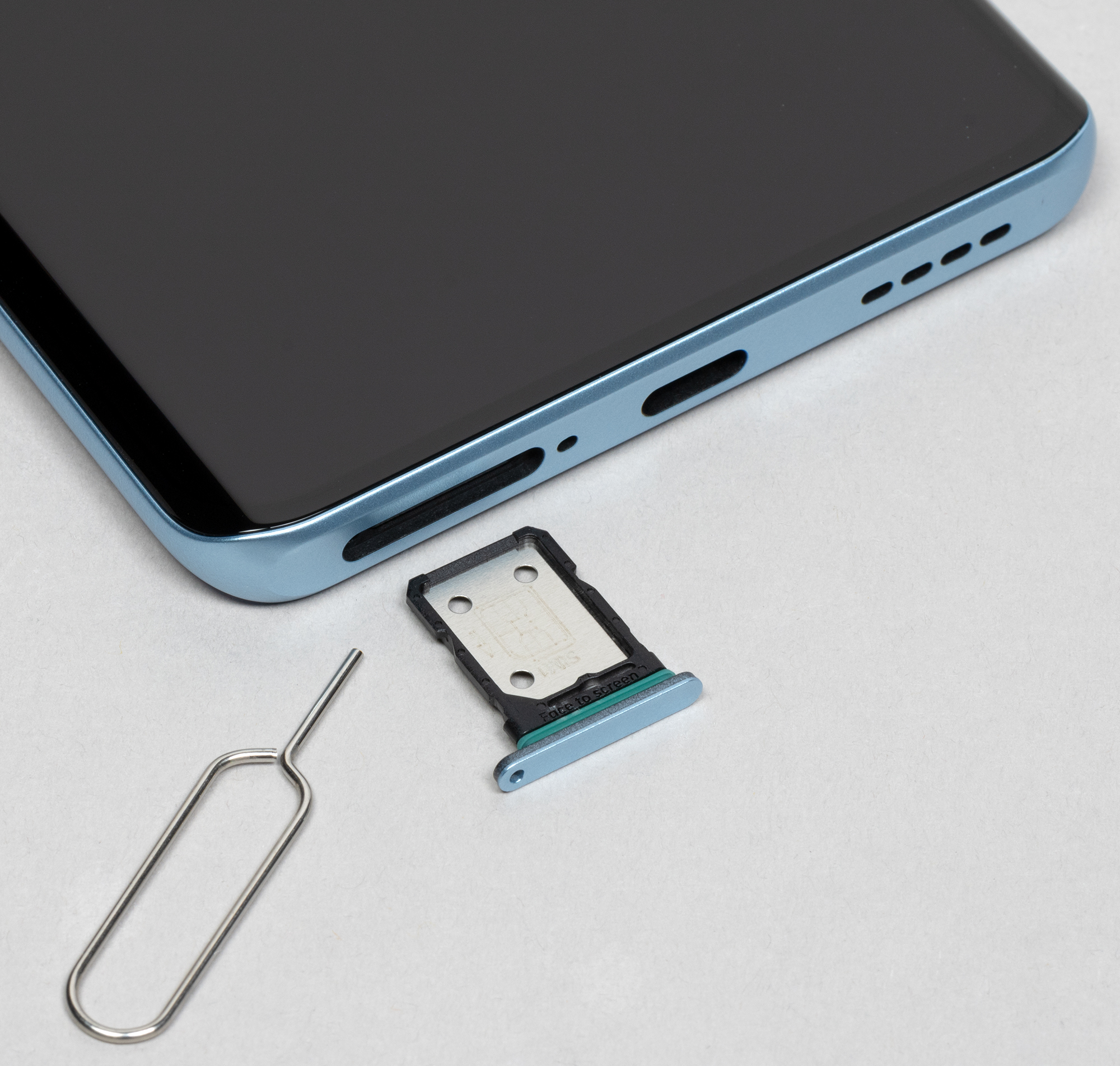 В разъем на нижнем торце можно установить две карты Nano-SIM — с одной и с другой стороны салазок. Для карты памяти microSD гнезда нет. Поддержки e-SIM тоже нет.