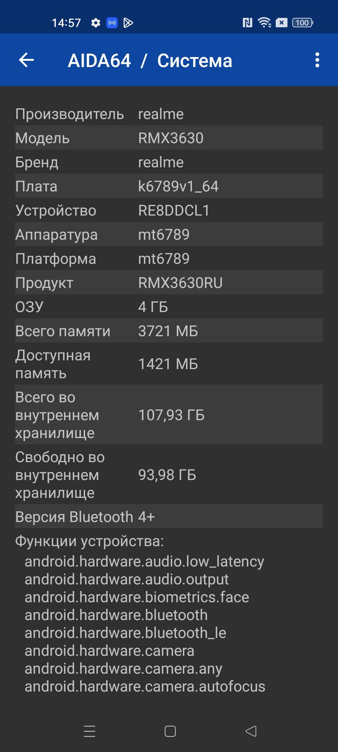 - Операционная система Android 12, Realme UI 3.0