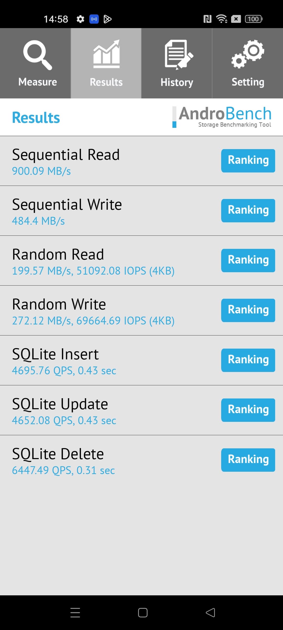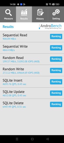 Результаты теста AndroBench на скорость работы с памятью: