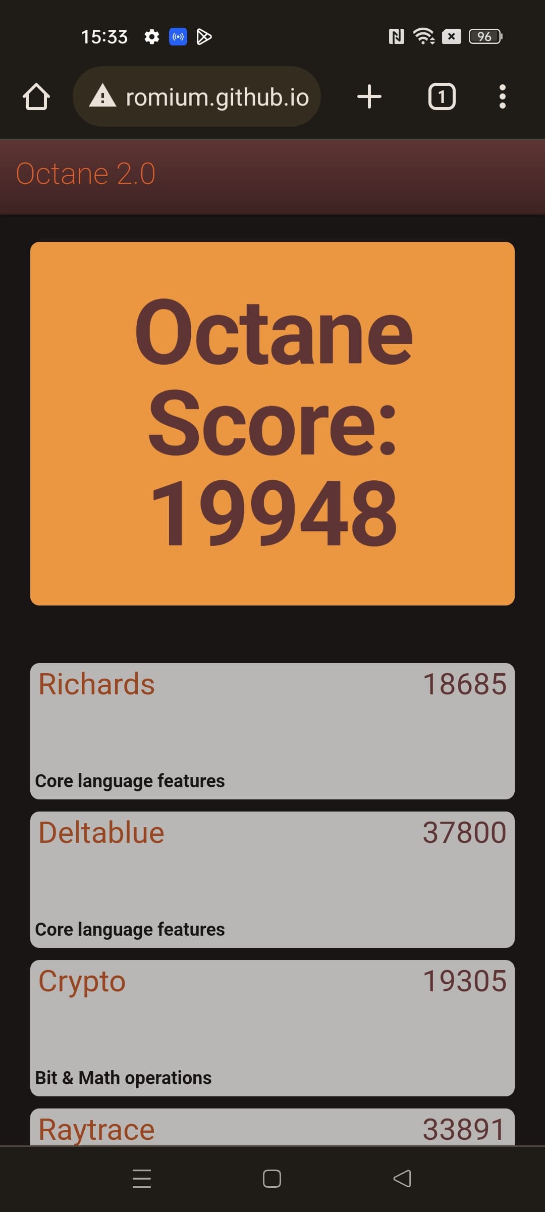 | Google Octane 2 (больше — лучше) | 19948 | 16860 | 19928 | 18041 | 16670 |