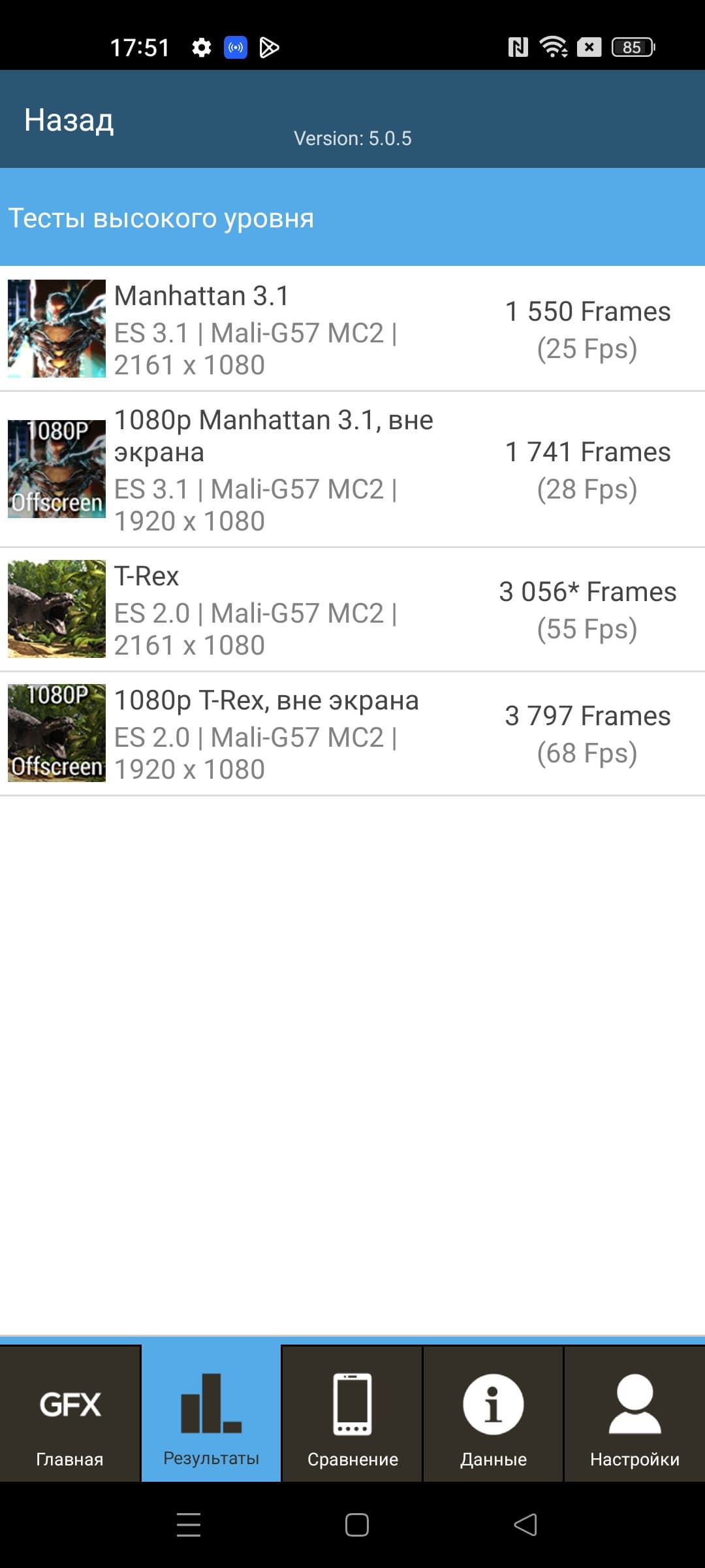 | GFXBenchmark T-Rex (Onscreen, fps) | 55 | 55 | 79 | 58 | 59 |