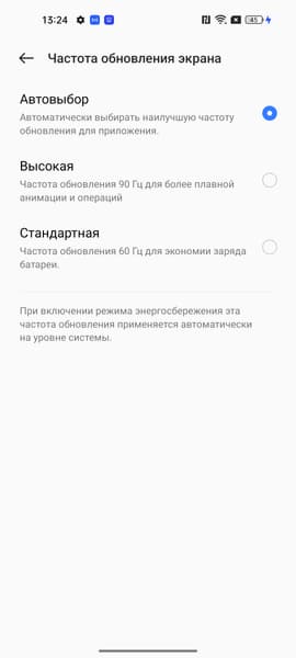 В настройках экрана можно включить режим с повышенной до 90 Гц частотой обновления: