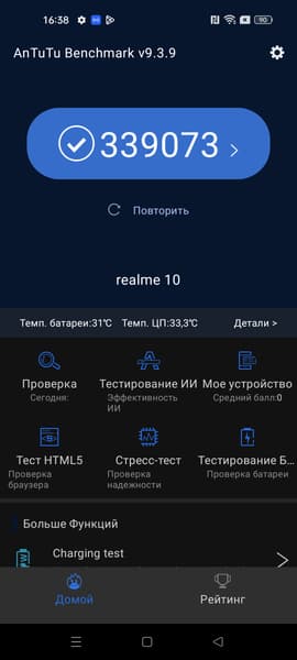 | AnTuTu (v9.x) (больше — лучше) | 339073 | 316939 | 353105 | 360557 | 344282 |