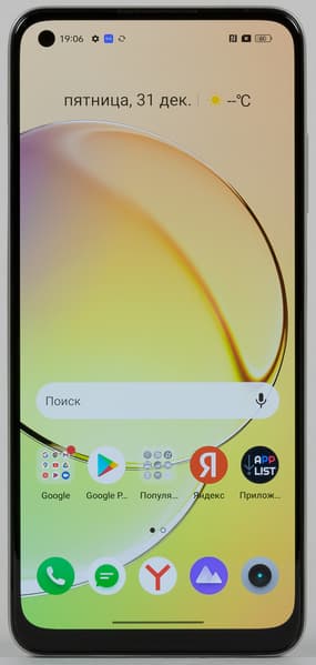 В качестве программной платформы в смартфоне используется актуальная ОС Android 12 с собственной оболочкой Realme UI 3.0, которая периодически получает обновления «по воздуху». Это последняя, самая свежая версия фирменного интерфейса — одна из самых удачных в плане лаконичного оформления и логичного строения на европейский вкус. Здесь нет несуразного надуманного «располовинивания» шторки на две разных в зависимости от места вытягивания — она привычная, единая, раскладывающаяся вниз поэтапно с помощью жеста. Навязчивой рекламы нет и в помине. Зато есть официальный магазин приложений Google и полноценная поддержка всех сервисов Google.