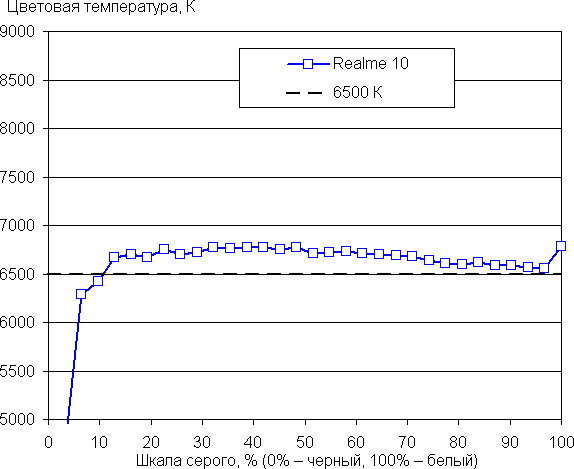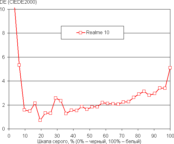 (Самые темные области шкалы серого в большинстве случаев можно не учитывать, так как там баланс цветов не имеет большого значения, да и погрешность измерений цветовых характеристик на низкой яркости высокая.)