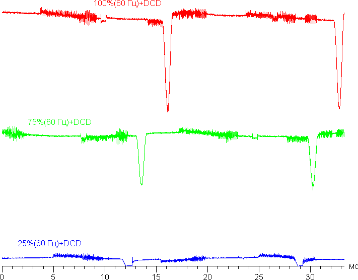При включении функции DC Dimming характер модуляции немного меняется — на низкой яркости амплитуда и частота снижаются, мерцание визуально не обнаруживается: