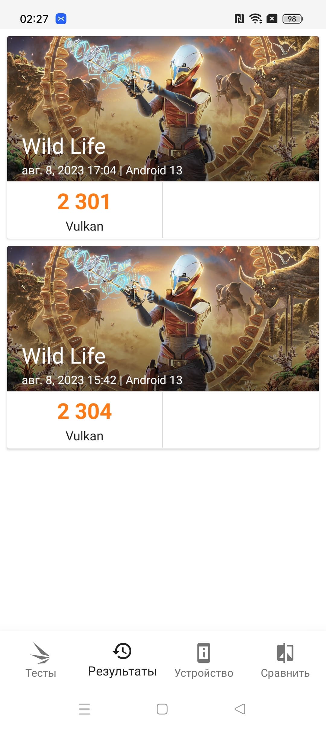 | 3DMark Wild Life Vulkan (больше — лучше) | 2304 | 2497 | 4505 | 4186 | 2450 |