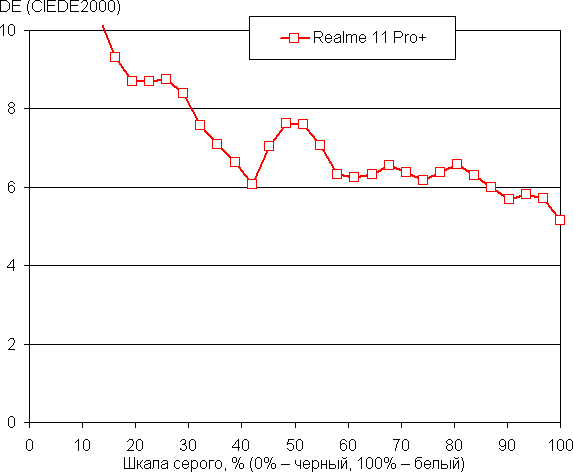 (Самые темные области шкалы серого в большинстве случаев можно не учитывать, так как там баланс цветов не имеет большого значения, да и погрешность измерений цветовых характеристик на низкой яркости высокая.)