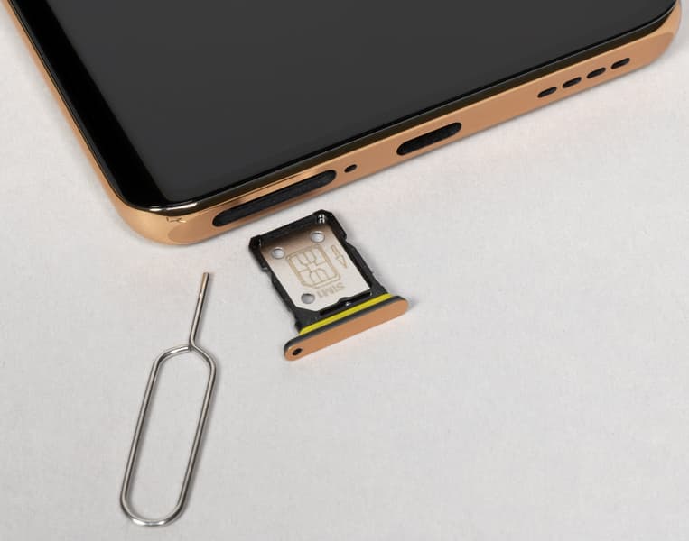 В разъем на нижнем торце можно установить две карты Nano-SIM (с одной и с другой стороны салазок), а места для карты памяти microSD нет.
