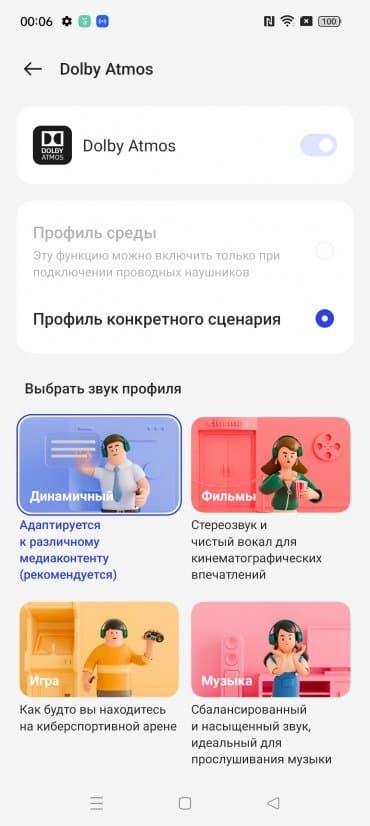 У смартфона два стереодинамика, звучат они громко, хотя и не слишком сочно, в спектре больше высоких частот. В наушниках звучание на достойном уровне, есть возможность самостоятельной настройки с помощью технологии Dolby Atmos.