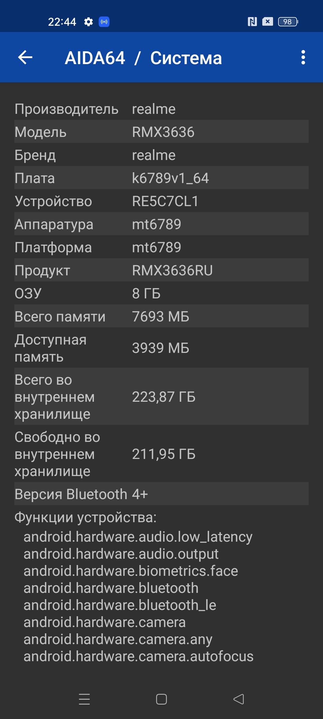 - Операционная система Android 12, Realme UI 3.0