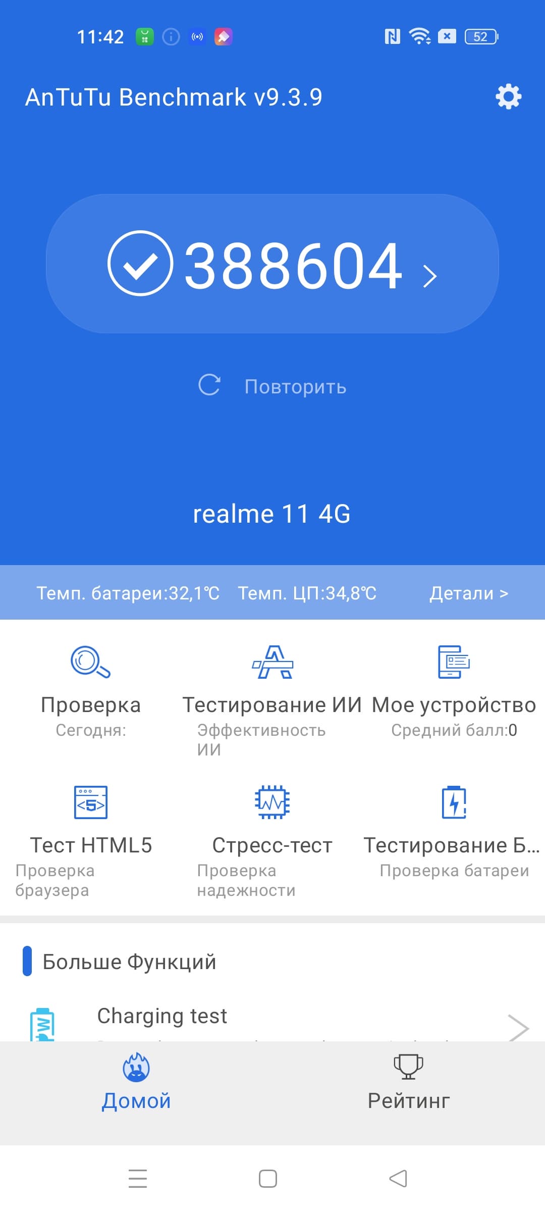 | AnTuTu (v9.x) (больше — лучше) | 388604 | 683485 | 602528 | 536193 | 397188 |