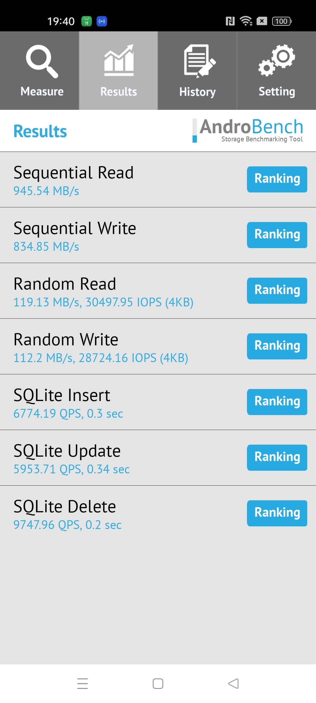 Результаты теста AndroBench на скорость работы с памятью: