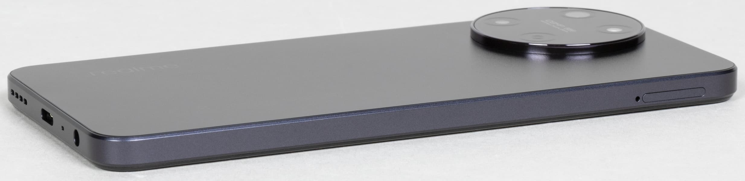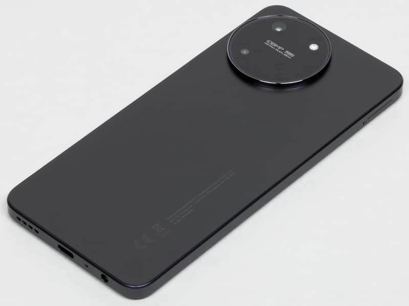 Черная версия смартфона выглядит просто и строго: у корпуса чистая матовая поверхность без каких-либо узоров и градиентных переходов. Это, возможно, делает аппарат не слишком привлекательным для молодежи, но для более взрослой аудитории будет в самый раз. Аккуратно и симметрично расположенные элементы, минимум «блеска» — по внешнему виду Realme 11 трудно сходу угадать его ценовую категорию.