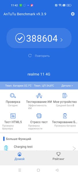Смартфон Realme 11 имеет батарею со стандартным объемом 5000 мА·ч и демонстрирует в тестах высокую автономность.