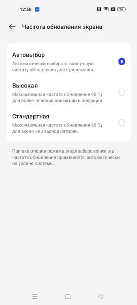 В настройках экрана можно включить режим с повышенной до 90 Гц частотой обновления: