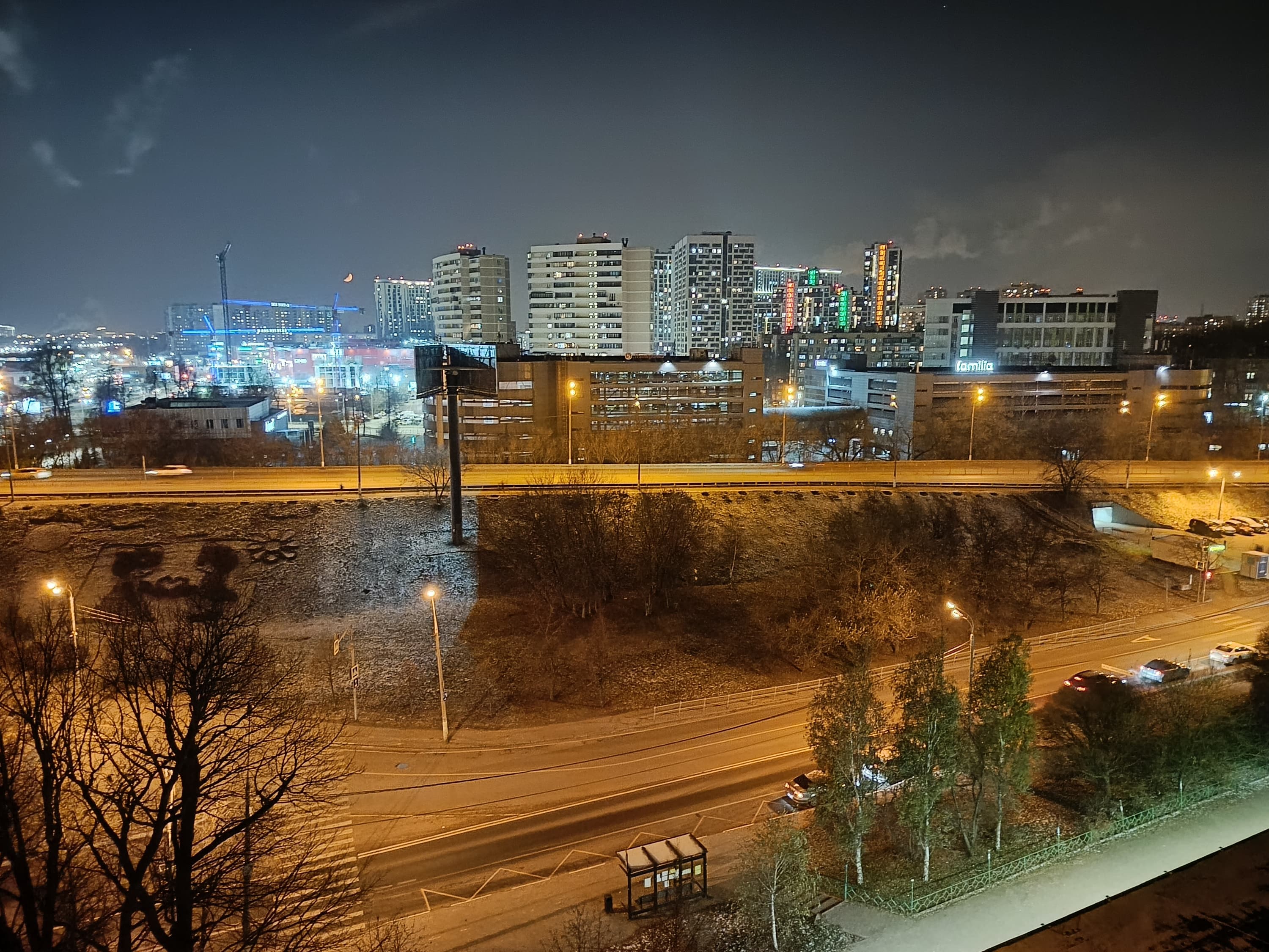 Камера в целом типичная бюджетная, но в рамках этого сегмента к ней претензий нет. Фотографии в полном разрешении (108 Мп) выглядят вполне прилично и даже могут быть обработаны в фоторедакторе, если вам не нравится обработка по умолчанию, с явным подчеркиванием контурной резкости у 12-мегапиксельных снимков, полученных с объединением пикселей. Детализация средняя, динамический диапазон матрицы недостаточно широк, цвета немного искажены — небо то фиолетовое, то розовое. Ночью детализация сильно проседает, появляются многочисленные артефакты от подавления шумов. В общем, результат ожидаемый и вполне приемлемый.