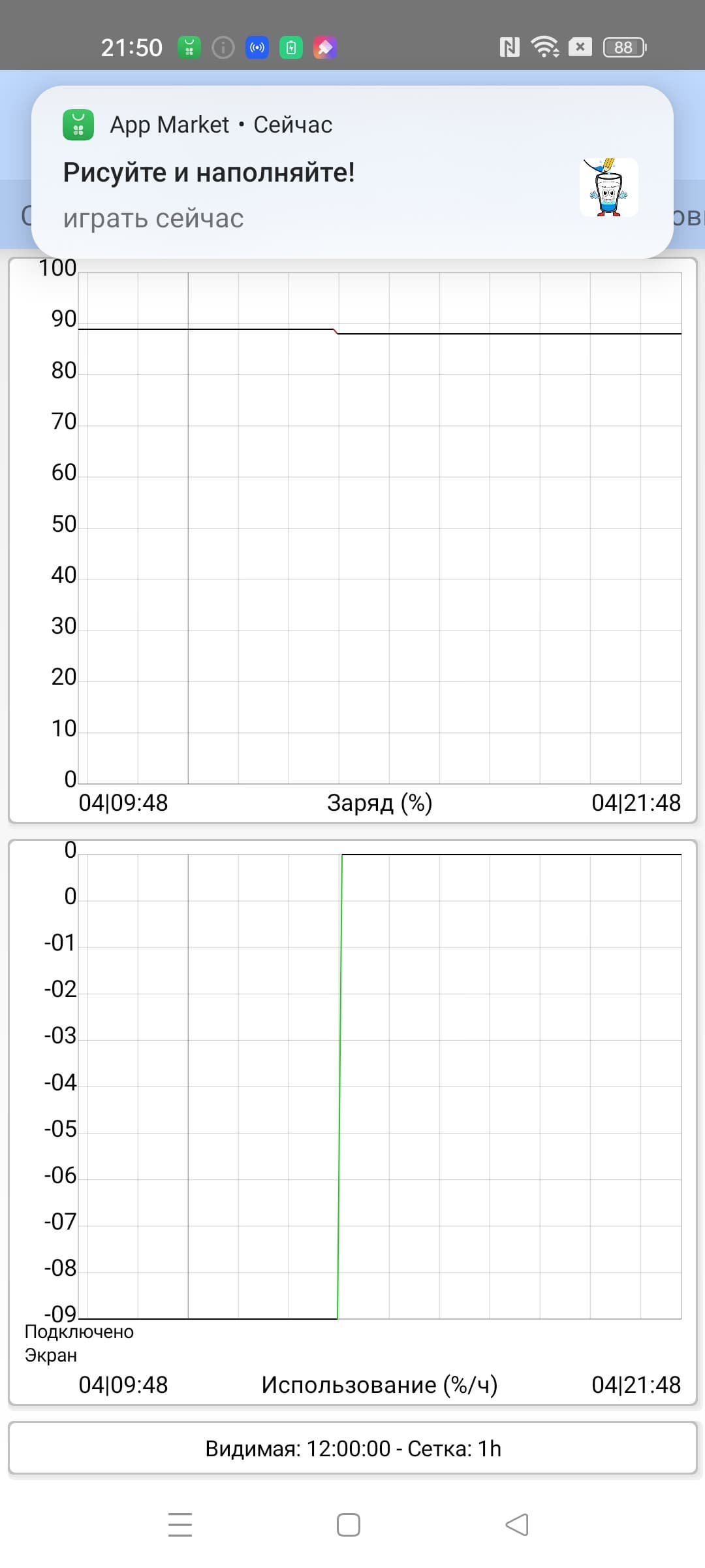 Тестирование традиционно проводилось на обычном уровне энергопотребления без использования функций энергосбережения, хотя таковые в аппарате имеются. Условия тестирования: выставлен минимальный комфортный уровень яркости (примерно 100 кд/м²). Тесты: беспрерывное чтение в программе Moon+ Reader (со стандартной, светлой темой); беспрерывный просмотр видео в HD-качестве (720р) через домашнюю сеть Wi-Fi; игра Injustice 2 с автонастройками графики.
