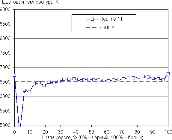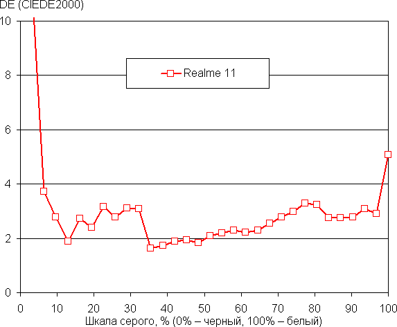 (Самые темные области шкалы серого в большинстве случаев можно не учитывать, так как там баланс цветов не имеет большого значения, да и погрешность измерений цветовых характеристик на низкой яркости высокая.)
