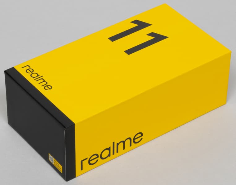 Смартфон Realme 11 поставляется в картонной коробке с привычным желто-черным оформлением.