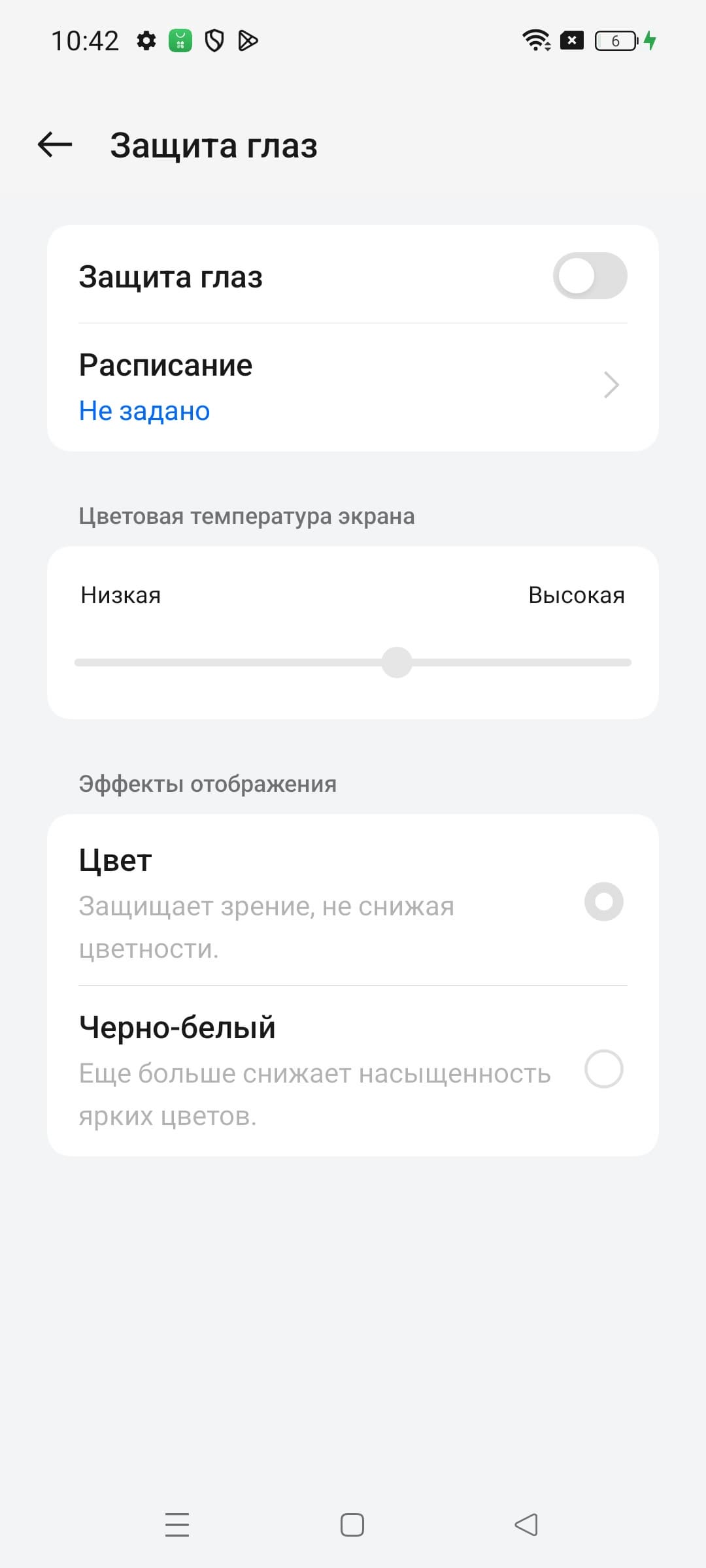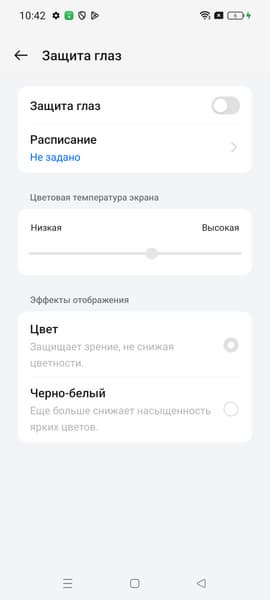 Дополнительно в этом устройстве есть возможность скорректировать цветовой баланс с помощью выбора профиля цветовой температуры или регулировки оттенка на цветовом круге. Но особого смысла это делать нет, достаточно выбрать профиль Естественный. Также в настройках можно уменьшить интенсивность синей компоненты.