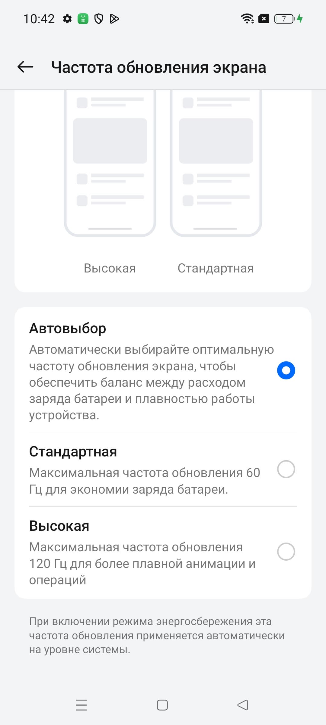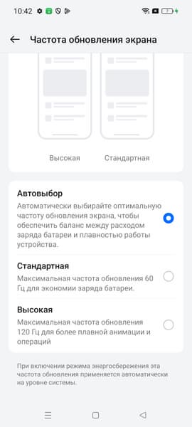 В настройках экрана можно включить режим с повышенной до 120 Гц частотой обновления: