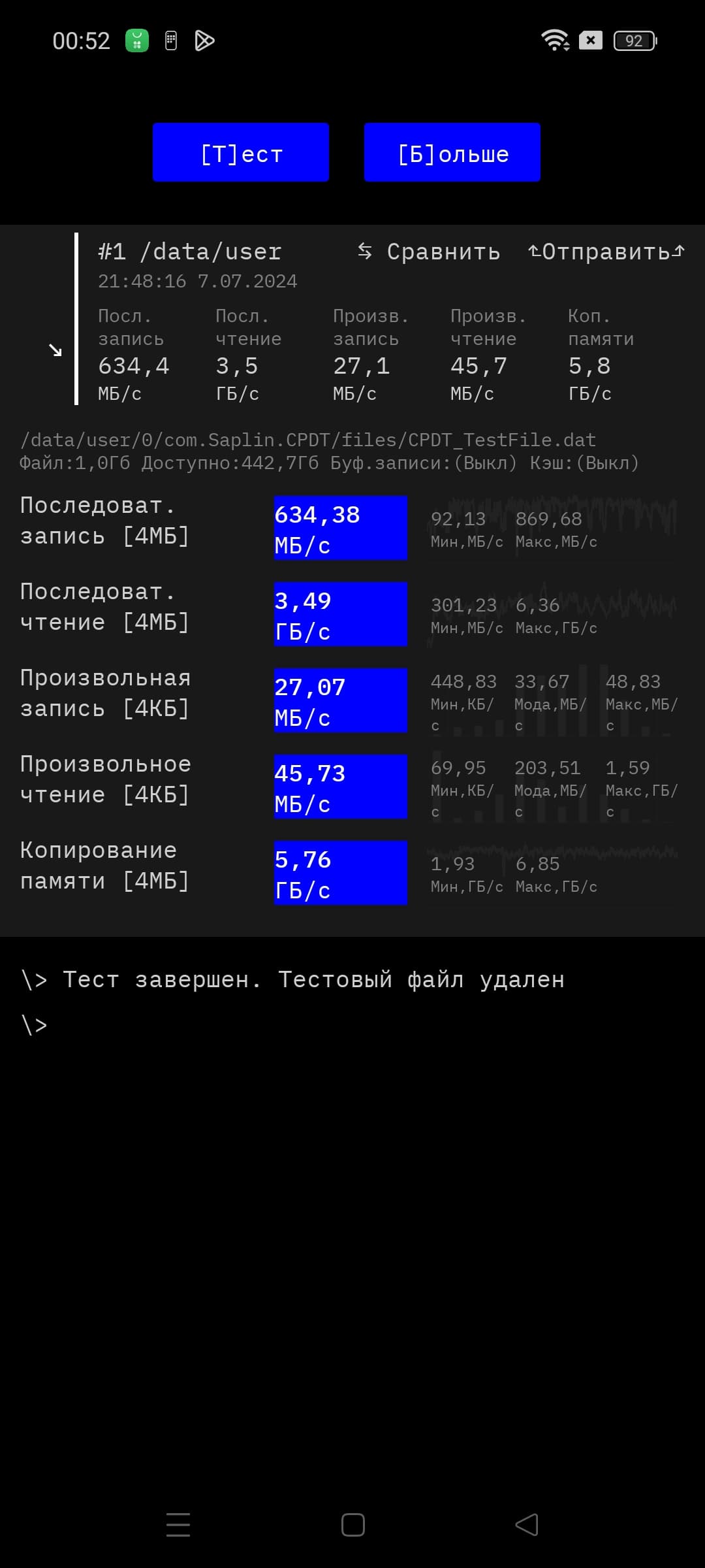 Результаты тестирования скорости памяти: