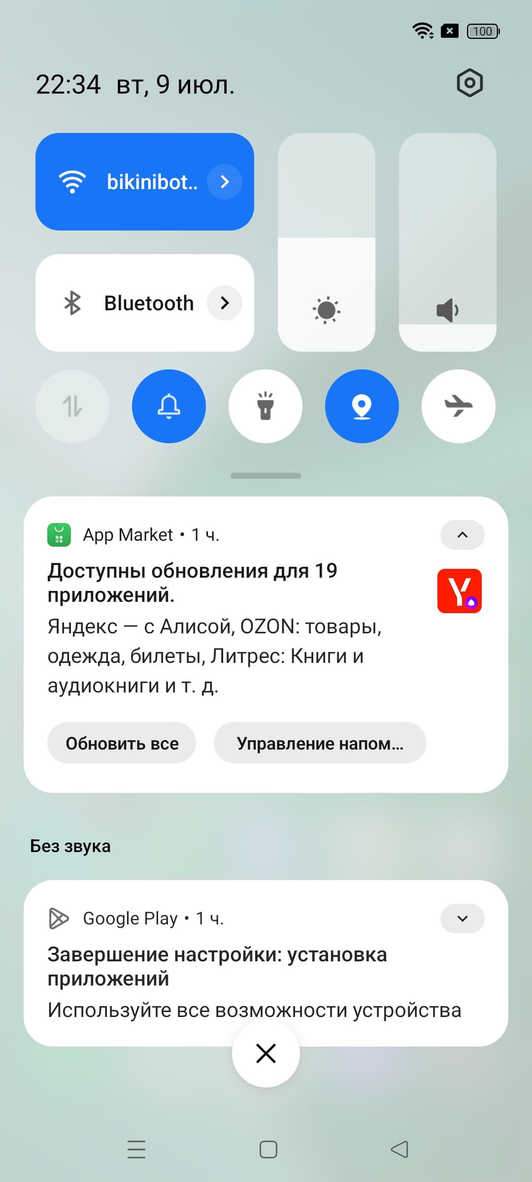 Оттягиваемая шторка здесь не разделена на две части, она единая, это радует. Официальный магазин приложений Google Play и доступ к сервисам Google — на месте.