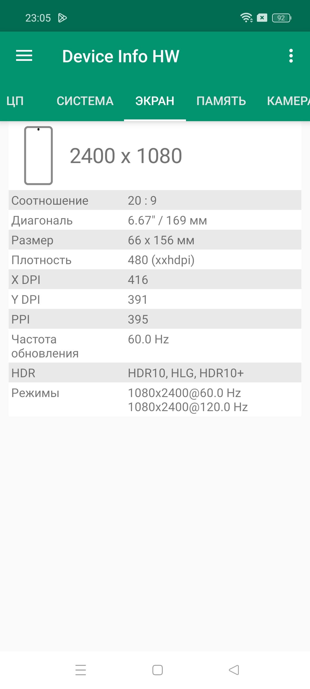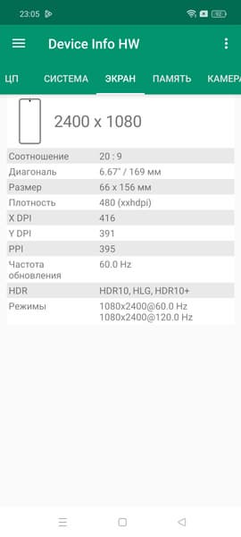 - Сенсорный дисплей AMOLED, 6,67″, 1080×2400, 20:9, 395 ppi, 120 Гц