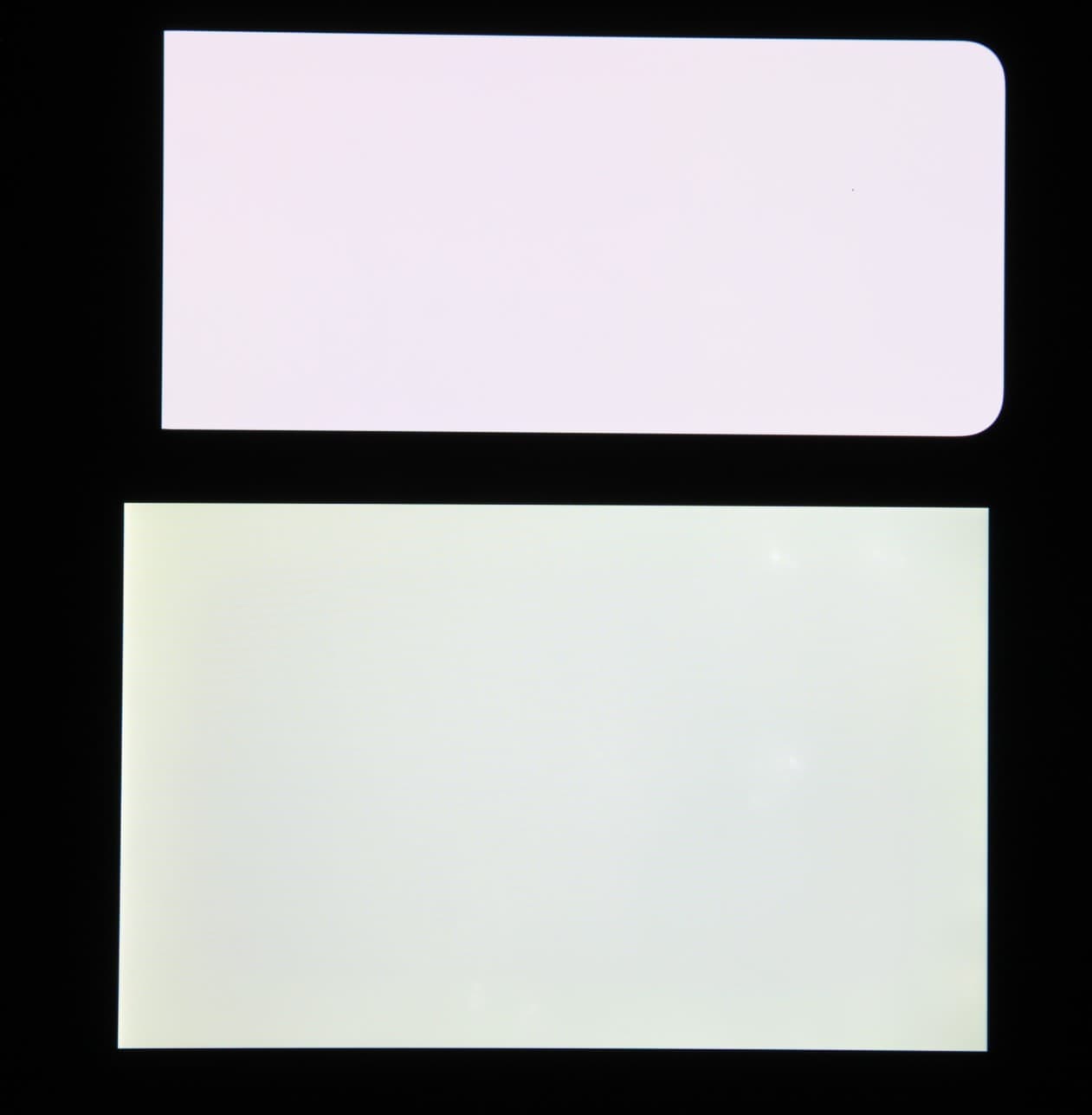Экран характеризуется великолепными углами обзора. Яркость под углом у обоих экранов заметно уменьшается (если сравнивать с Nexus 7), но в случае смартфона падение яркости выражено гораздо меньше. В итоге, даже если установить формально одинаковую яркость, то экран этого смартфона визуально выглядит гораздо более ярким (в сравнении с ЖК-экранами), так как на экран мобильного устройства часто приходится смотреть как минимум под небольшим углом. Правда, у смартфона белый цвет при отклонении даже на небольшие углы приобретает легкие радужные оттенки, но черный цвет остается просто черным под любыми углами. Он настолько черный, что параметр контрастности в данном случае неприменим. Для сравнения приведем фотографии, на которых на экраны смартфона и второго участника сравнения выведены одинаковые изображения, при этом яркость экранов изначально установлена примерно на 200 кд/м², а цветовой баланс на фотоаппарате принудительно переключен на 6500 К.