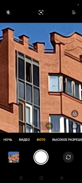 Зум лишь цифровой, каким именно способом он делается, не очень понятно, но в итоге деталей у «зумированной» картинки не больше, так что этот режим может пригодиться, лишь если вам лень «зумить» снимок пальцами на экране смартфона. Максимальный уровень цифрового зума — 20×.