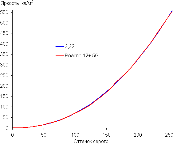 Напомним, что в случае OLED-экранов яркость фрагментов изображения динамично меняется в соответствии с характером выводимого изображения — немного уменьшается для светлых в целом изображений. В итоге полученная зависимость яркости от оттенка (гамма-кривая), скорее всего, не точно соответствует гамма-кривой статичного изображения, так как измерения проводились при последовательном выводе оттенков серого почти на весь экран.