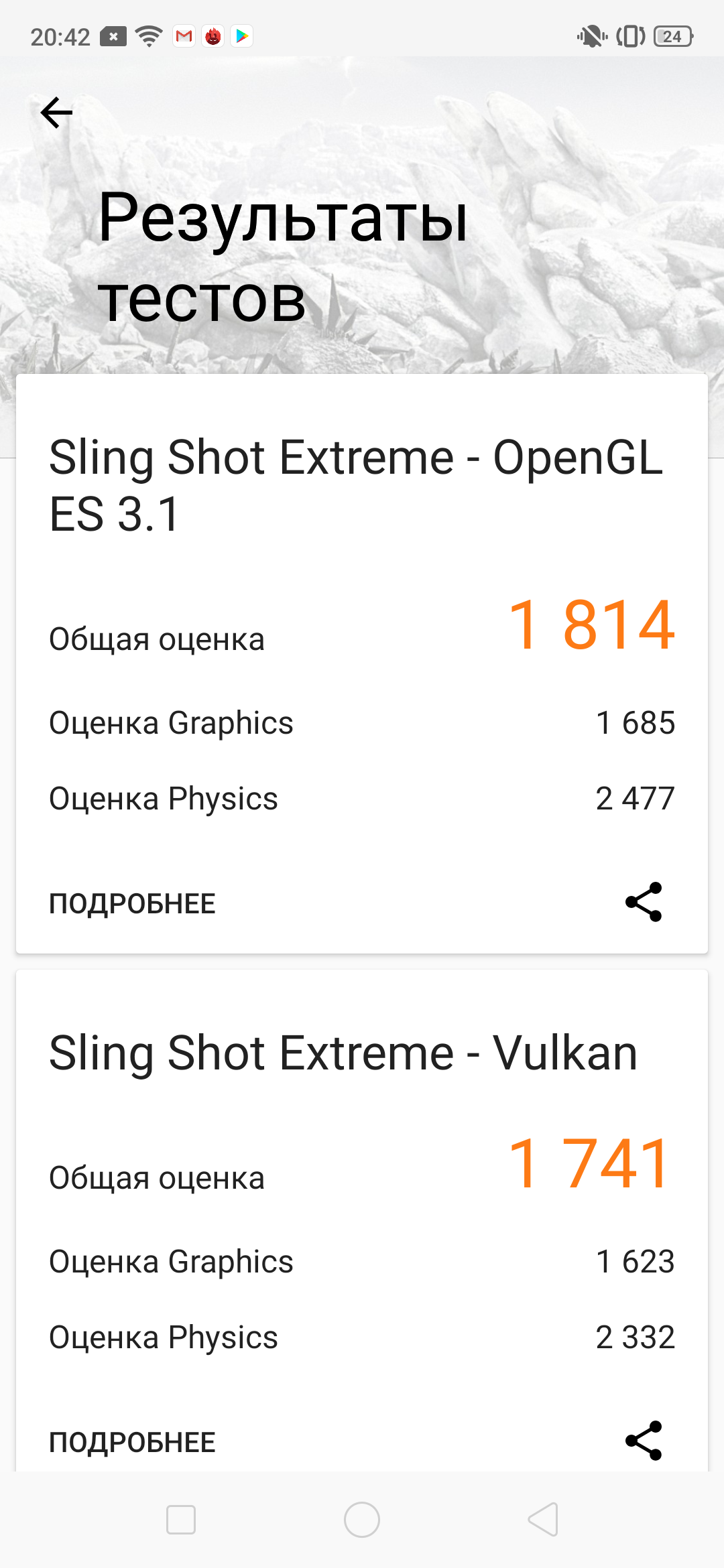 | 3DMark Ice Storm Sling Shot Ex Vulkan (больше — лучше) | 1741 | 1366 | 1271 | 928 | 1374 |