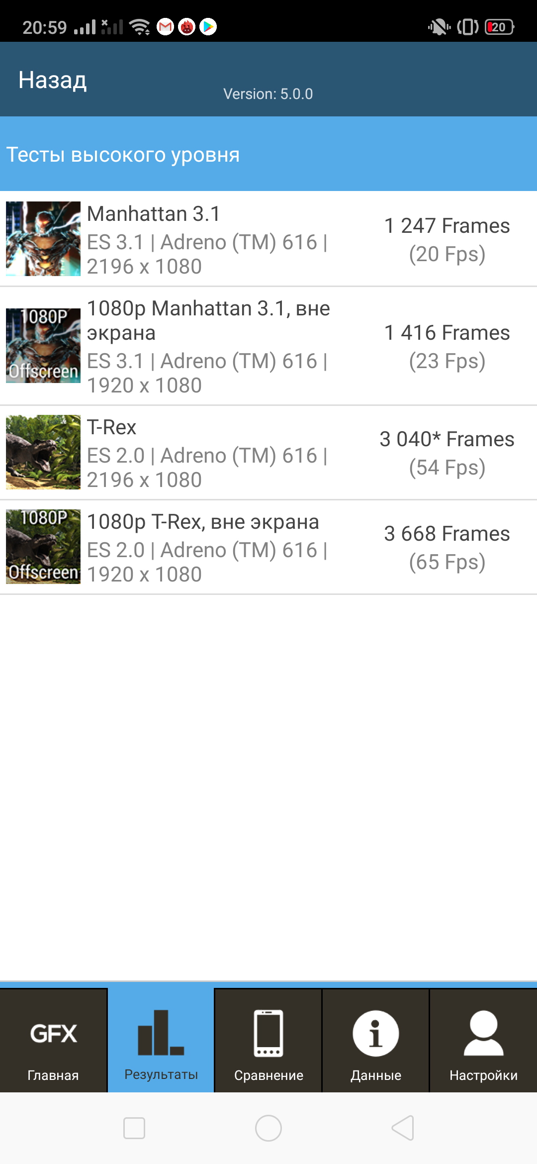 | GFXBenchmark Manhattan ES 3.1 (Onscreen, fps) | 20 | 13 | 13 | 10 | 13 |