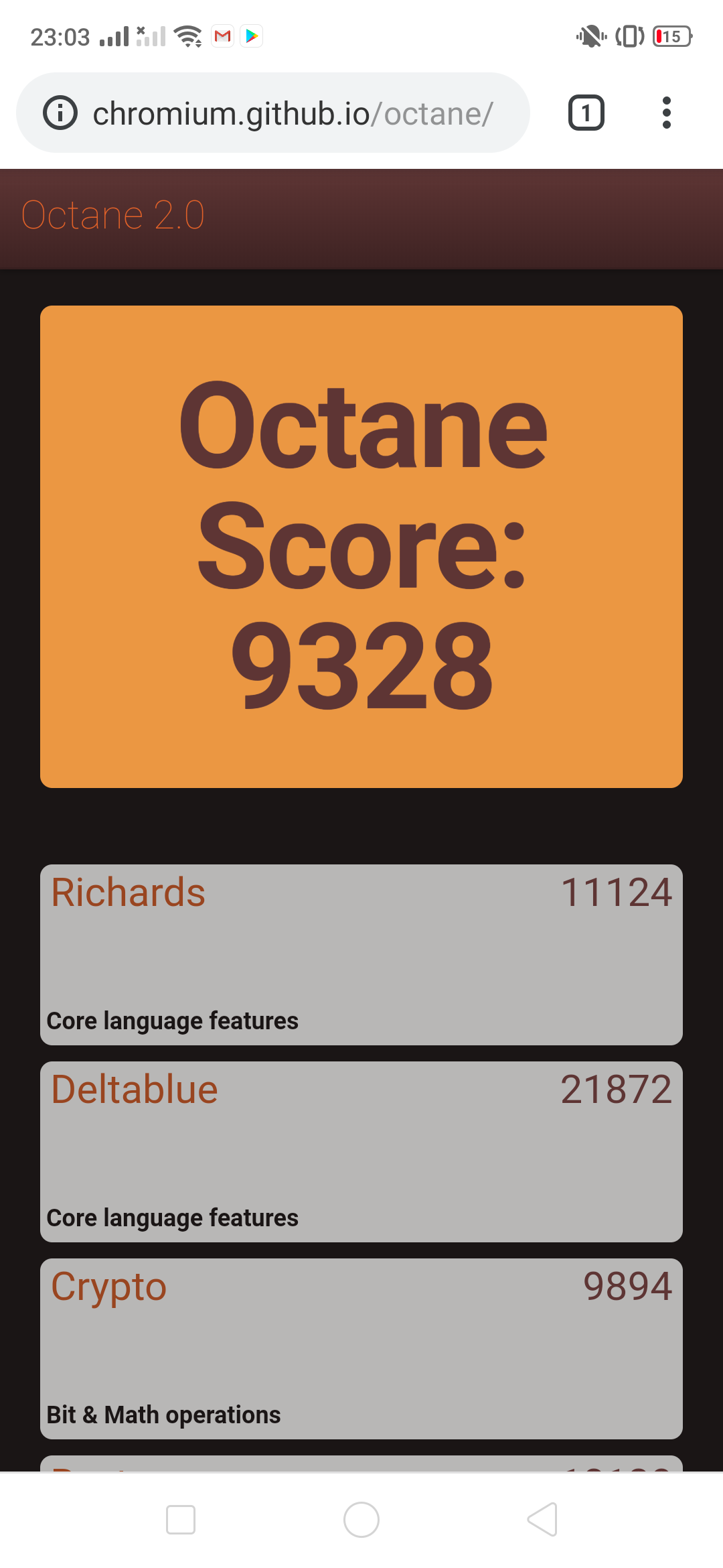 | Google Octane 2 (больше — лучше) | 9328 | 9053 | 10331 | 8162 | 10491 |